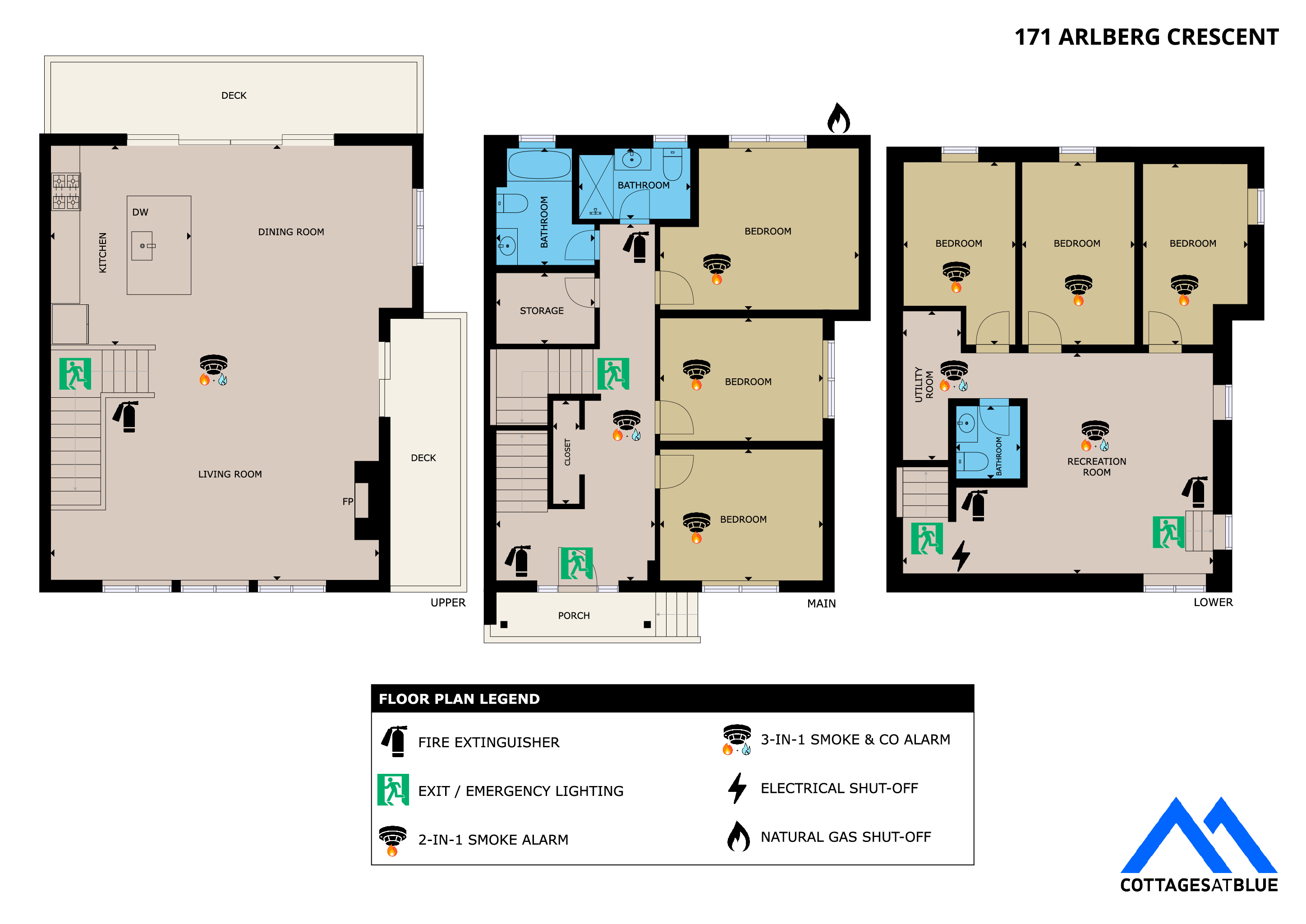 This large 2,700 sq ft 3 level, 6 bedroom, 3 bathroom Swiss-style chalet boasts wonderful views of Blue Mountain. Enjoy the view of Blue Mountain from the spacious deck or from the comfort of the living room with a natural gas fireplace.